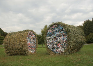 ομαδοποιημένα ανακυκλώσιμα υλικά. Τα έργα αυτά μοιάζουν με φωλιές εντόμων ή
